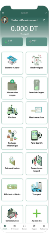Plus besoin d’avoir votre portefeuille à portée de main. Gérez votre argent au quotidien en temps réel et accéder à une panoplie de services en un clic.